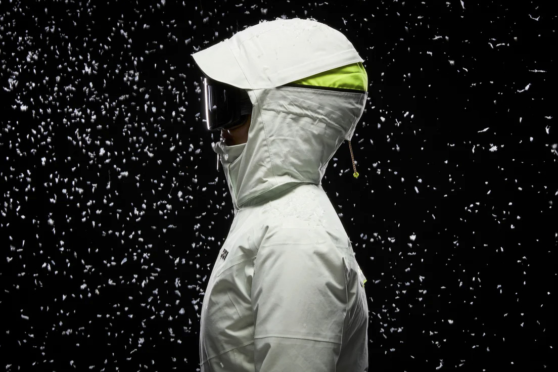 La jaqueta inclou un Life Pocket+™ per prolongar la durada de la bateria del mòbil al fred, una corretja de telèfon de silicona que acomoda una varietat de mides de telèfon per minimitzar qualsevol risc de caiguda, i una faldilla de pols amb cremallera per a un acabat elegant i net quan es guarda. La jaqueta també compta amb una caputxa compatible amb el casc amb groc neó d’alta visibilitat que és visible quan el ventilador expandible s’obre per a més seguretat i visibilitat, especialment en condicions de neu extremes. La caputxa també es pot treure quan no és necessari, i per a més seguretat, la jaqueta també conté un reflector RECCO® per buscar en cas d’emergència.
