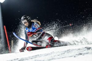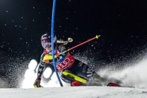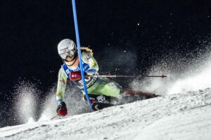 COURCHEVEL, FRANCE – DECEMBER 16: Albert Manresa Mijares of Team Andorra in action during the Audi FIS Alpine Ski World Cup Women’s Slalom on December 16, 2025 in Courchevel, France. (Photo by Millo Moravski/Agence Zoom)