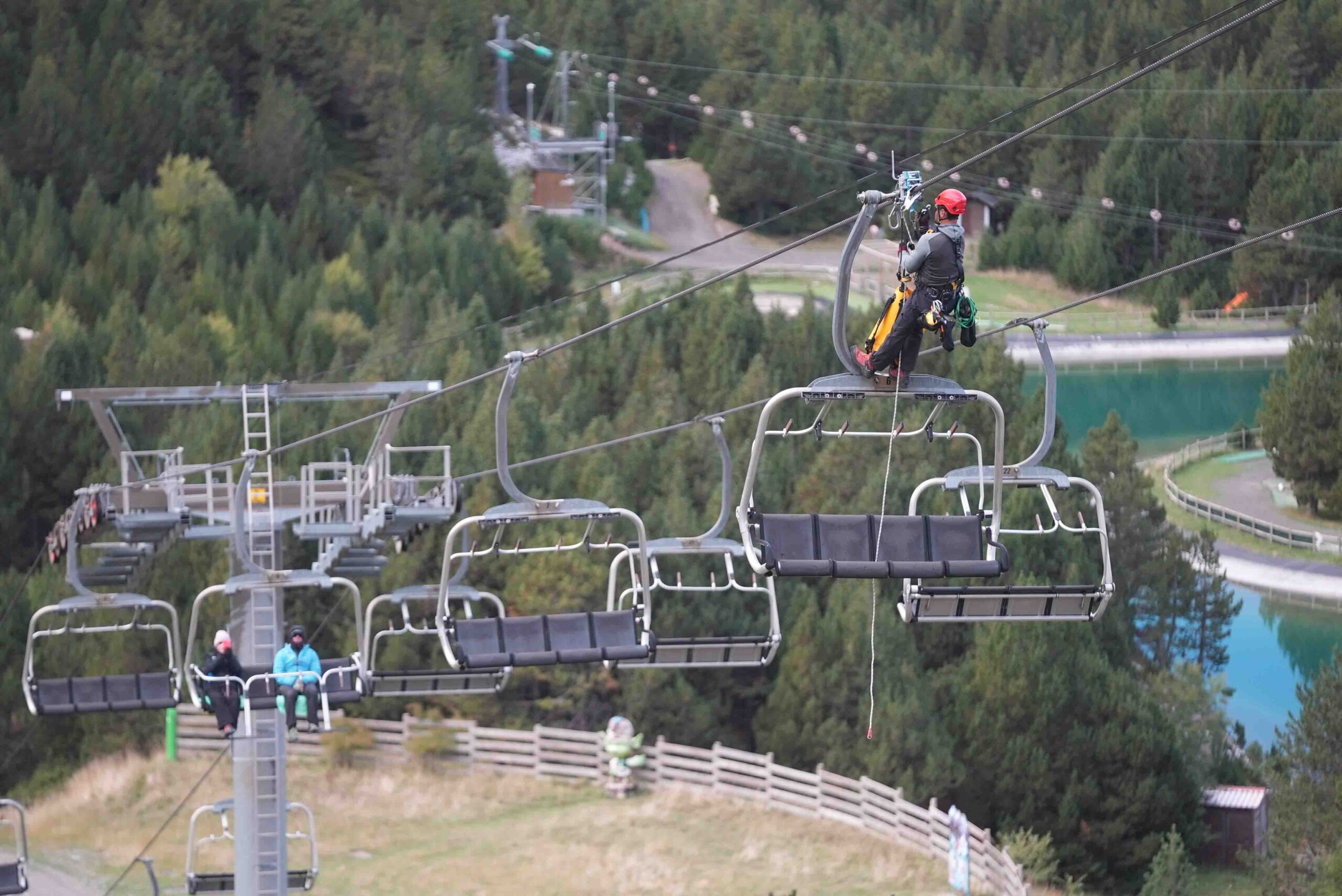 Prop d’una vintena de treballadors de l’Escola d’Esquí i altres serveis de l’estació s’han distribuït en grups al llarg de les diferents cadires, mentre que els equips de pisters s’han dividit a les pilones de la línia del telecadira. Un cop situats, s’ha simulat una aturada del telecadira i s’ha activat el protocol, en aquest cas d’evacuació vertical de les persones ubicades a les cadires. Entre els paràmetres que cal tenir en compte, també s’ha valorat el temps de durada per finalitzar amb èxit la intervenció. L’objectiu era establir les eines i el protocol perquè els pisters i altres equips implicats que hagin d’intervenir en cas d’incidència o emergència puguin resoldre la incidència amb la màxima eficàcia i celeritat.